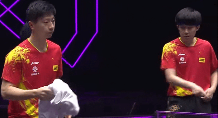 因为是国乒球员之间的对决,所以场边是没有教练员进行指导的,球员们自己选择暂停和调整。