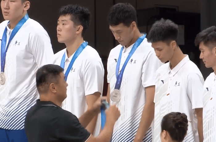 颁奖仪式!广东队闷闷不乐,全场高呼郭艾伦,刘玉栋为蒋兴权戴金牌!
