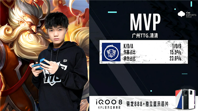 双方常规开局。2分14秒广州TTG主宰处击杀澜拿到一血。4分23秒佛山GK野区击杀橘右京。5分18秒广州TTG对抗路击杀东皇太一。6分06秒广州TTG野区击杀东皇太一。6分37秒广州TTG拿下暴君。7分28秒广州TTG摧毁敌方对抗路二塔并在团战中打出1换2。11分08秒中路团战广州TTG打出0换5。11分32秒广州TTG摧毁敌方发育路高地塔。11分38秒广州TTG摧毁敌方水晶拿下比赛。