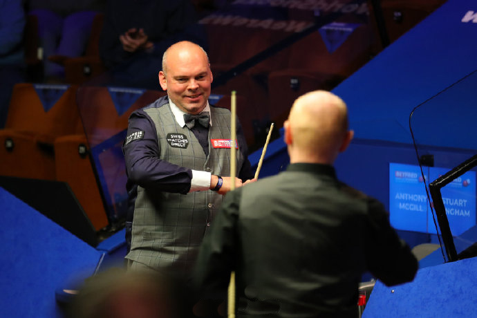 决胜局,麦克吉尔单杆11分防守;防守比拼,麦克吉尔留下机会,宾汉姆单杆破百拿下了比赛。