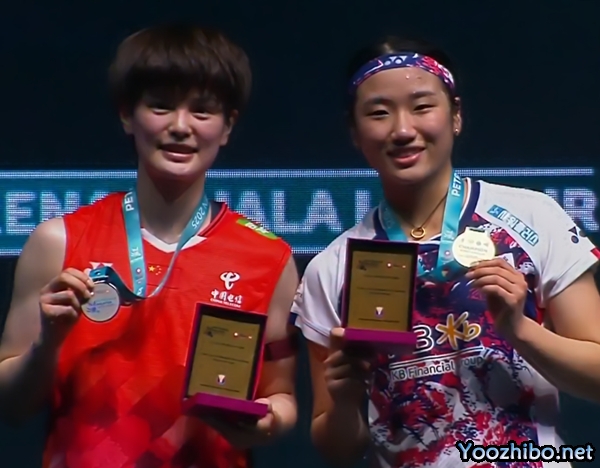 第一局,王祉怡开局落后下反超,一度取得11-8的领先,安洗莹连得9分一举拉开比分,王祉怡追至14-17后再度失误,最终17-21输掉第一局。