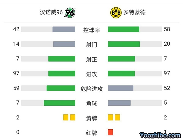 第10分钟,多特右路发动攻势,穆科科禁区内小角度打门打在防守球员腿上折射入网,多特蒙德1-0汉诺威。