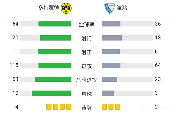 全场比赛结束,多特蒙德3-4波鸿!
