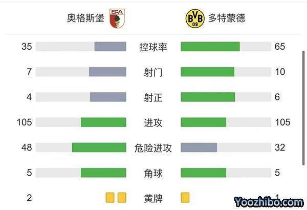 全场比赛结束,多特蒙德1-1奥格斯堡。