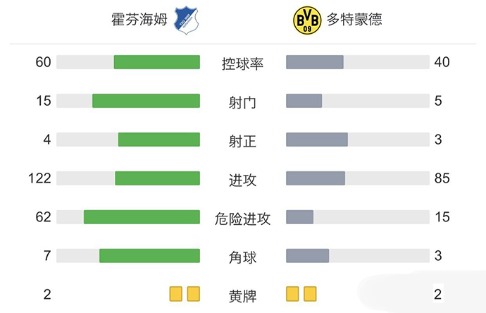 第58分钟,多特再次取得领先,胡梅尔斯向前输送传球,哈兰德回敲,马伦得球直塞,罗伊斯得球冷静推射得手,多特2-1霍芬海姆。