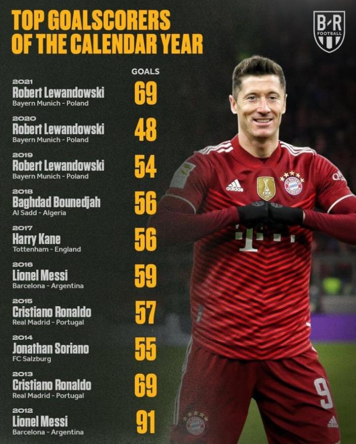2021年:莱万(拜仁/波兰),69球