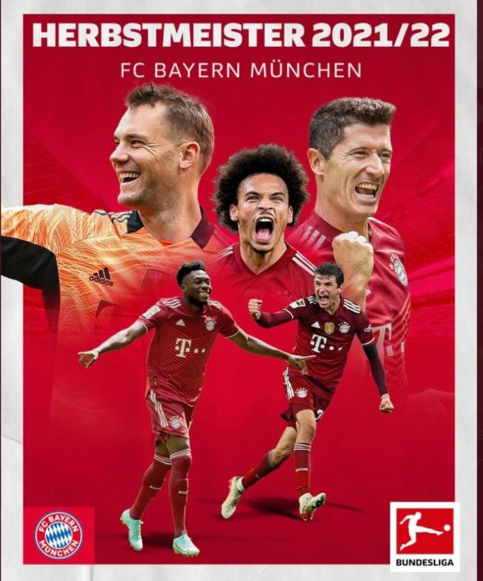 24直播网12月15日讯 拜仁德甲联赛中5-0屠杀斯图加特,提前一轮获得2021-22赛季德甲联赛半程冠军。