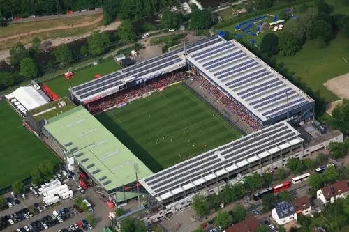 黑森林球场,是位于德国巴登-符腾堡州布赖施高县弗赖堡的多用途体育场,现时主要用于足球赛事,黑森林球场是德甲俱乐部弗赖堡体育俱乐部的主场球场,于1953年建造,可容24,000名观众。1993年时任弗赖堡主教练福尔克·芬克(Volker Finke)与“罗尔夫·迪施太阳能建筑事务所”(Rolf Disch Solar Architecture)一同将球场开发为太阳能基地,在球场顶盖铺设光伏模组,使弗赖堡体育俱乐部成为首支应用太阳能的德国足球俱乐部,进一步巩固弗赖堡作为“太阳能城市”之名,并为各个球场示范可再生能源的实用性。