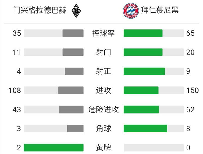 比赛第9分钟,门兴率先进球!阿方索带球被断,门兴反击,普莱亚前场左侧得球,带到禁区前沿直接远射破门,门兴1-0拜仁。这球也是本赛季德甲第一球。