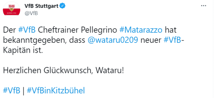 24直播网讯 远藤航今年28岁,场上司职中场,出自湘南比马青训。2020年7月,远藤航从比甲圣图尔登转会斯图加特。
