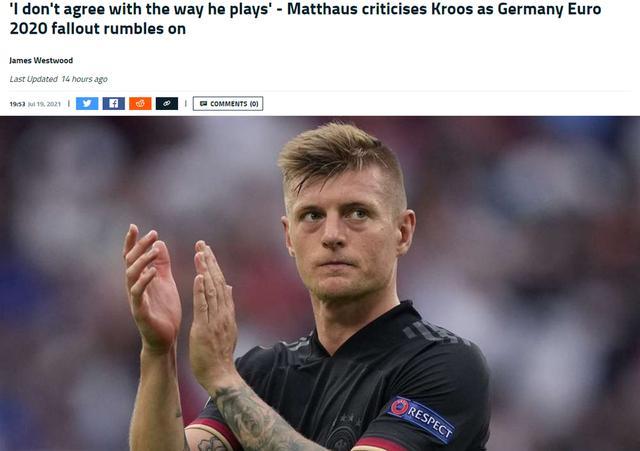 马特乌斯写道:“克罗斯已经不再是世界级球员,我与他没有私人恩怨,但我不认可他的踢法。他传球速度慢,让球队整体节奏变缓。”