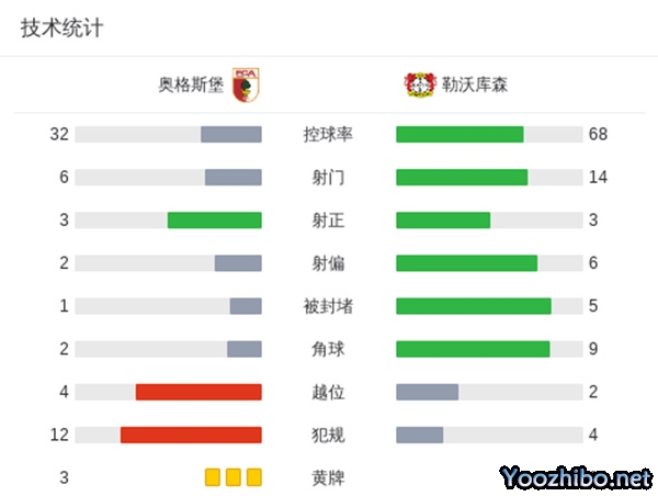 第14分钟,扎卡中场长传转移到右路,弗林蓬插上横传到禁区,泰里耶包抄抢射得手,奥格斯堡0-1勒沃库森!