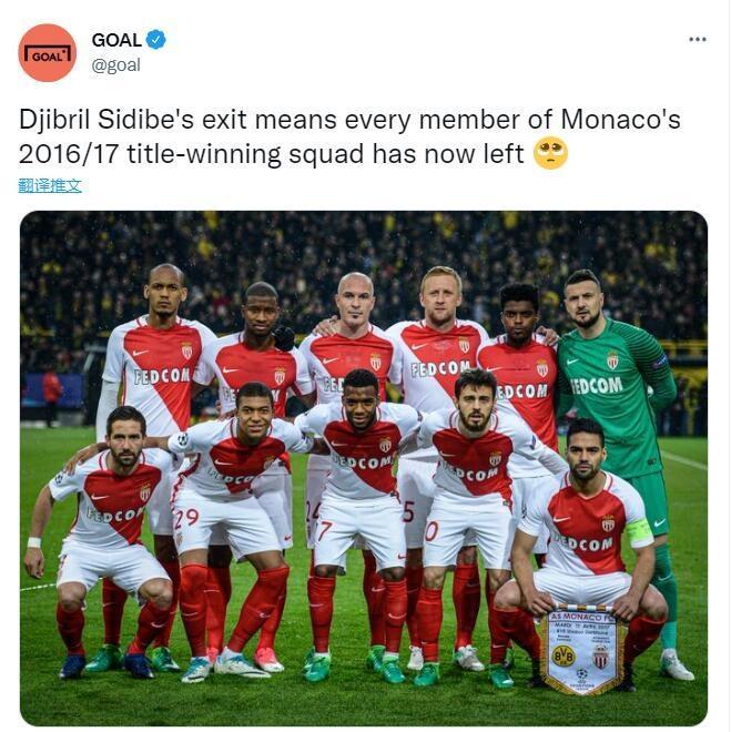 分崩离析,摩纳哥16-17冠军阵容全部离队