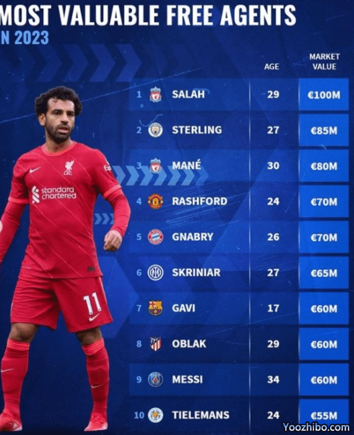 2023年夏天合同到期球员身价排名: