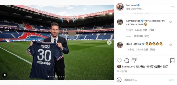 除了他们之外还有人没说话连发了多个意思为祝福、开心的表情包,如阿圭罗、德科、迪玛利亚、马丁内斯等等,这人气,这人缘真是没得比,当今世界足坛可能也就C罗跟他独一档!梅西从巴萨来到巴黎,如果换到NBA当中可能有点像库里加盟篮网,或者巅峰期的詹姆斯加盟了那些年的勇士!