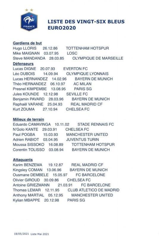 来源:24直播网05-19 10:5324直播网讯 近日,有网友晒出了法国新一期名单文件,本泽马回归,特奥、登贝莱在列。目前该名单还未得到媒体的确认或者证实。