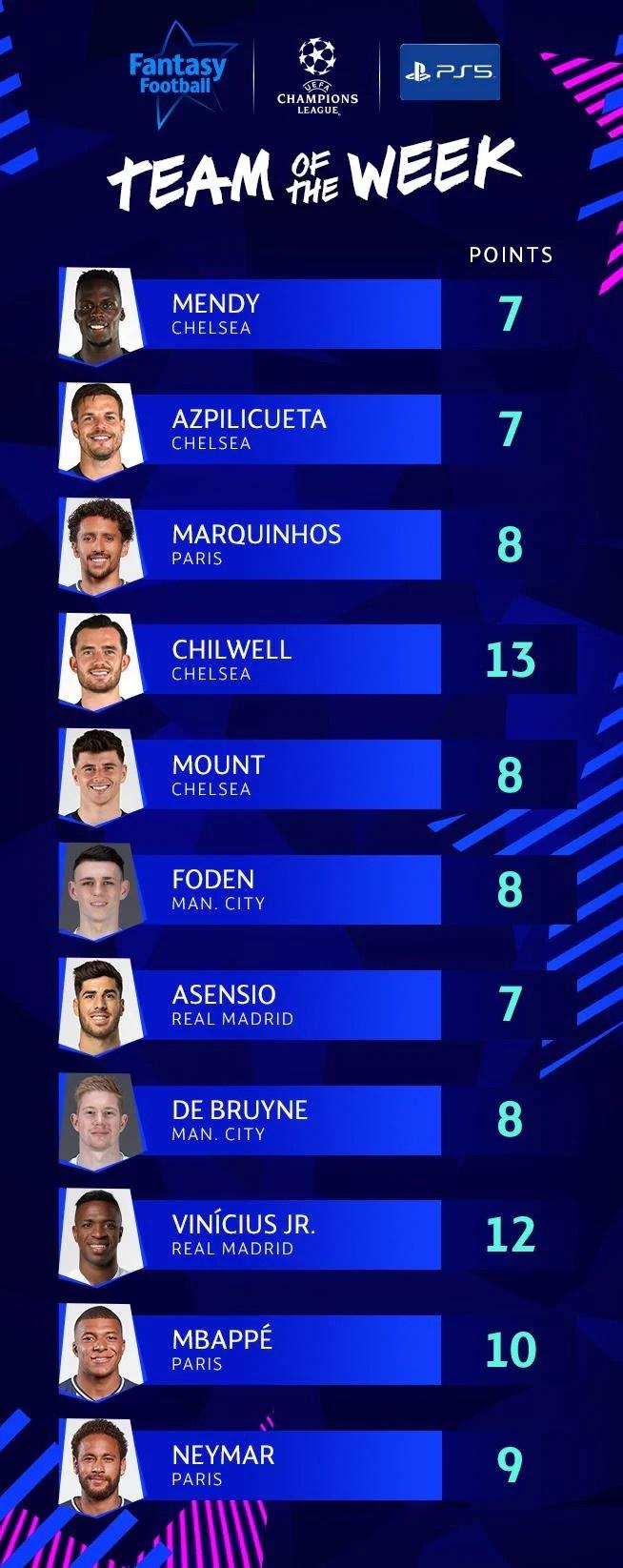 24直播网讯北京时间4月8日,欧足联官方公布欧冠本周最佳阵容,内马尔与姆巴佩领衔。