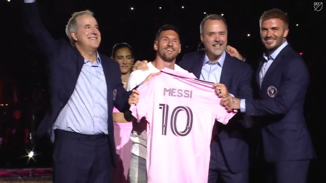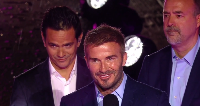 贝克汉姆现场发表演讲:“和大家一样,我迫不及待地想看到莱奥穿上我们的球衣参加比赛,女士们先生们,我们故事的新篇章从这里开始。”