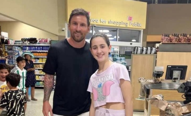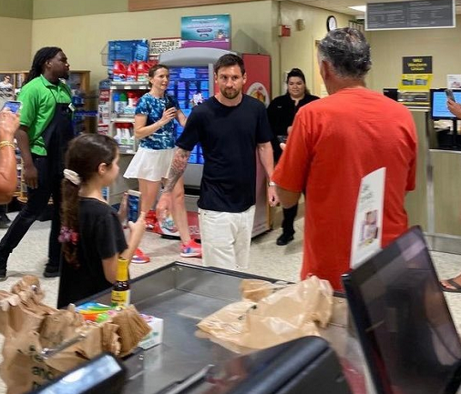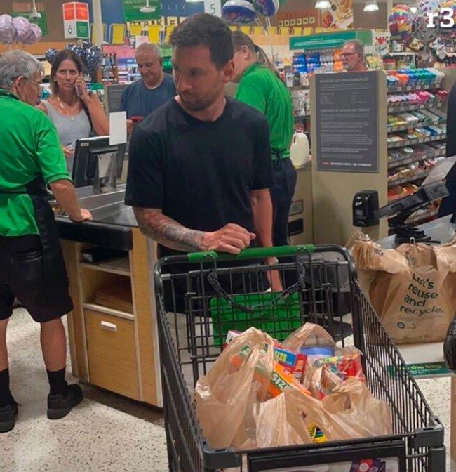 梅西逛超市!美国球迷太幸福,老太太表情抢镜,拖鞋T恤很惬意