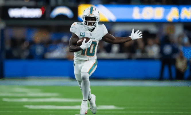 要知道现在的梅西已经是一名老将了,而泰里克-希尔则正处于巅峰的状态,拿到了4年1.2亿的大合同。同时他的一个特点就是速度快。泰里克-希尔被称为“猎豹”。去年西班牙的《马卡报》模拟不同项目的运动员进行百米赛跑,第一名属于9秒58的博尔特,泰里克-希尔排名第四,他的速度是NFL最快的11秒2。