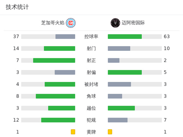 迈阿密1-4芝加哥 梅西缺阵&排东部倒2距附加赛区5分