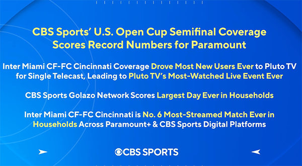 直播梅西的比赛总是会有惊喜的,此前就有媒体创造历史,《CBS体育》在美国公开赛半决赛迈阿密对阵辛辛那提的比赛报道使整个平台的收视率创下新高,为Pluto TV带来了有史以来单场最多的新用户,同时也是Pluto TV有史以来观看人数最多的直播赛事。