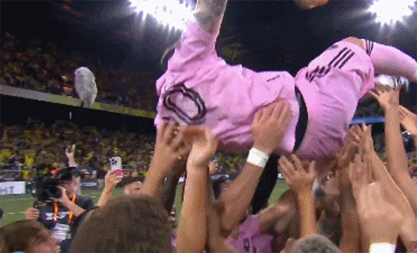 比赛结束之后,梅西和全队疯狂庆祝,队友们把梅西抛在空中,这是迈阿密国际成立之后的第一座冠军奖杯,这些球员们都创造了历史。