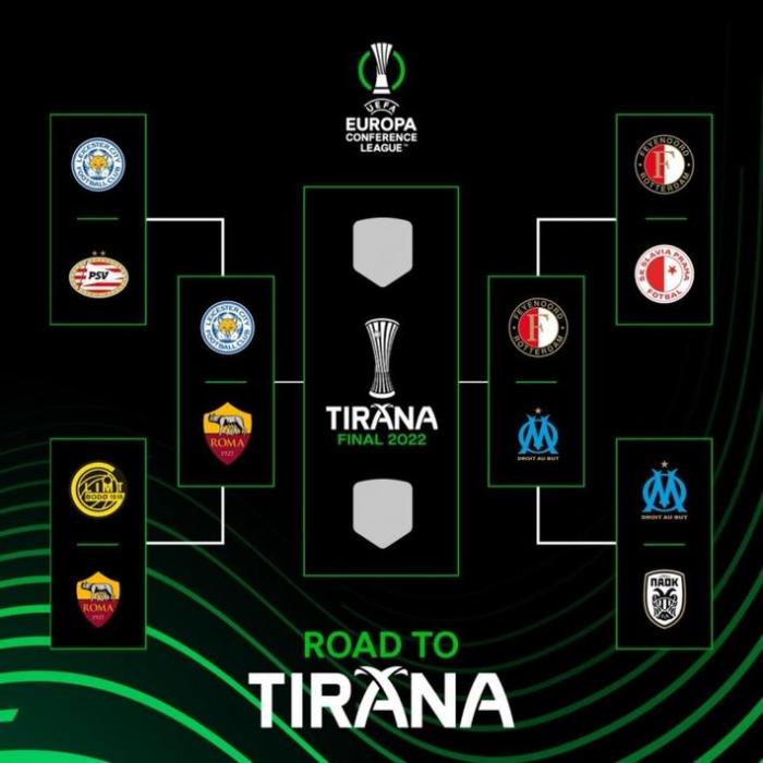 欧会杯四强对阵:蓝狐vs罗马,马赛vs费耶诺德