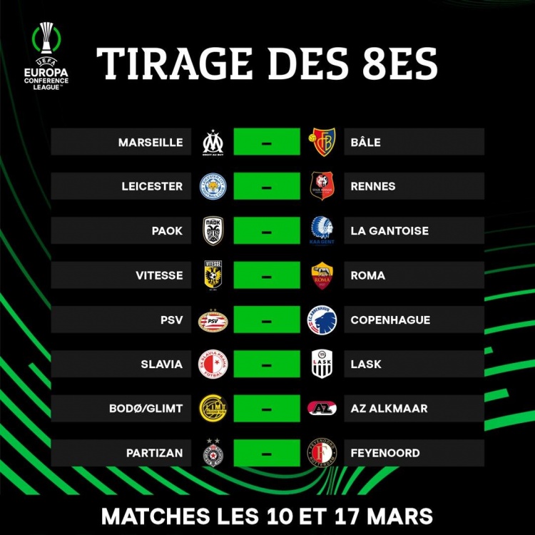 欧协联1/8决赛抽签出炉:穆帅好签,罗马莱斯特城领衔!