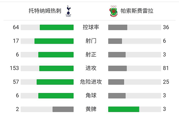 来源:24直播网08-27 09:52 24直播网讯:北京时间8月27日02:45,欧协联附加赛次回合,热刺主场迎战帕索斯费雷拉(首回合热刺0-1落败)。上半场凯恩梅开二度,希尔献助攻外加中柱;下半场洛塞尔索任意球造成安图内斯乌龙。最终,热刺3-0帕索斯费雷拉,总比分3-1晋级正赛。