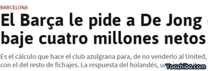 《阿斯报》表示,德容不会轻易接受大幅降薪,尤其是看到俱乐部正在高价高薪进行引援的情况下。