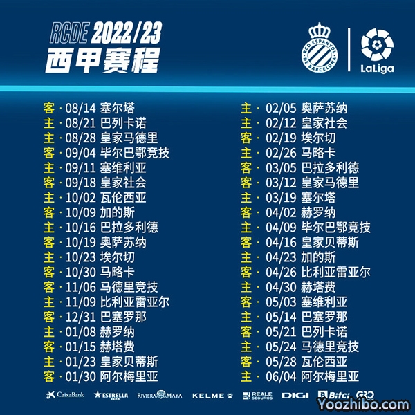2022-2023赛季西班牙人赛程表