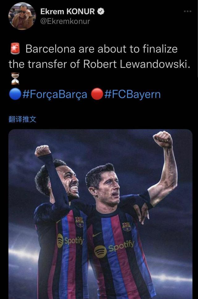 来源:24直播网05-15 15:5924直播网05月15日讯凌晨,来自知名记者Ekrem Konur的最新消息,效力于拜仁的波兰神锋莱万,加盟巴萨已经进入倒计时。为了强调进度,他还加上了一个沙漏(倒计时)的表情。巴萨跟队记者罗梅罗也证实,巴萨现在有80%的几率在今夏签下莱万。