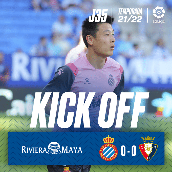 24直播网05月09日讯北京时间今天凌晨,西班牙人在西甲第35轮1-1战平奥萨苏纳,武磊首发出战但半场就被换下,以下为他上半场的数据。