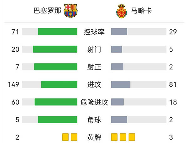 巴萨2-1马洛卡 德佩布斯克茨破门阿尔巴献助攻
