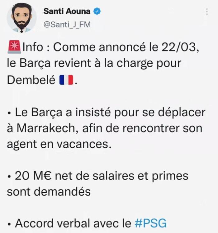 此外,Aouna还透露,登贝莱目前已经和