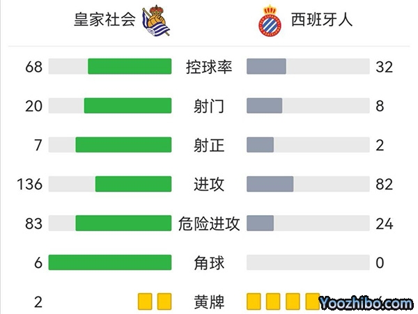 全场比赛结束,最终皇家社会1-0战胜西班牙。。