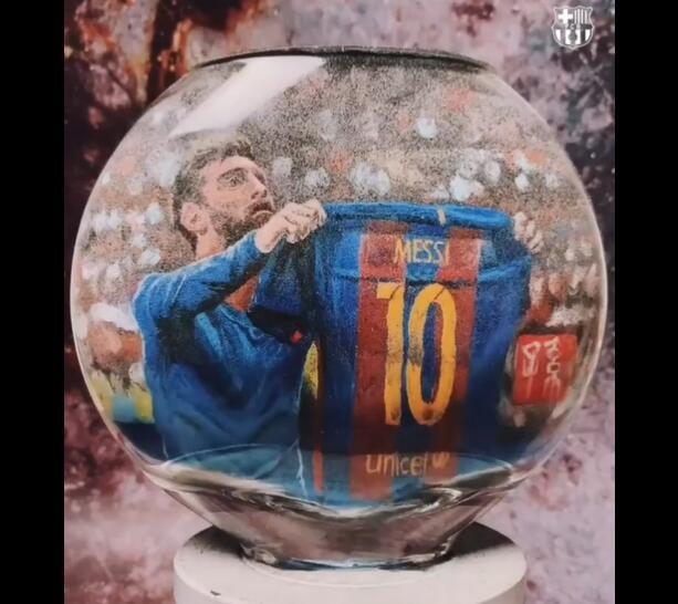 24直播网03月20日讯 消息,在本轮西班牙国家德比前,巴塞罗那官方社媒放出了梅西晒球衣的艺术沙画。