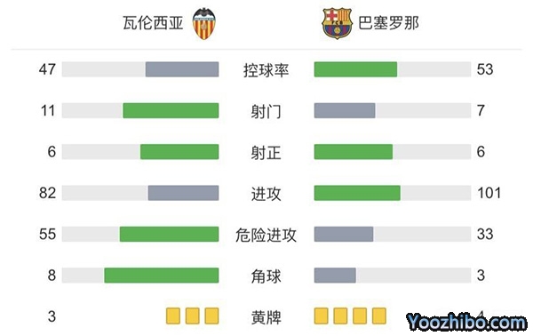 全场比赛结束,巴塞罗那客场4-1战胜瓦伦西亚。
