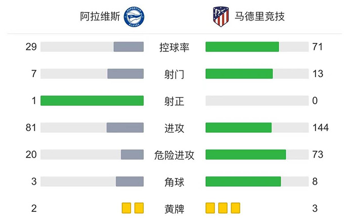 马竞0-1阿拉维斯 攻击群哑火仅一脚射正