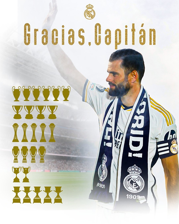 来源:24直播网06-26 17:3524直播网讯北京时间6月25日,西甲豪门皇家马德里官方宣布,34岁的队长纳乔在今夏合同到期后以自由身告别球队,为其23年的皇马生涯画上句号。据悉,纳乔下赛季将加盟沙特联升班马球队胡拜尔库迪西亚。