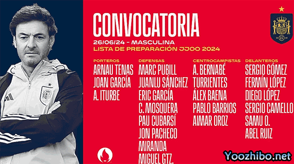 24直播网讯 西班牙国奥队今日公布了22人球员大名单:库巴西,费尔明以及埃里克-加西亚入选。