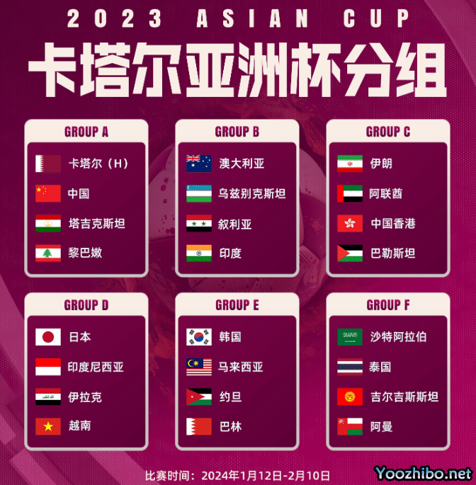 2023卡塔尔亚洲杯抽签结果: