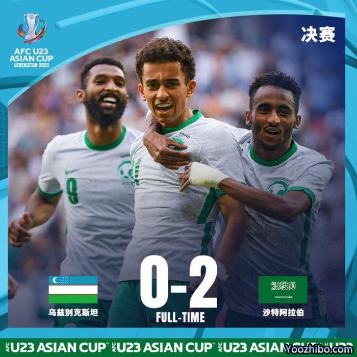 沙特2-0乌兹别克斯坦,队史首夺U23亚洲杯