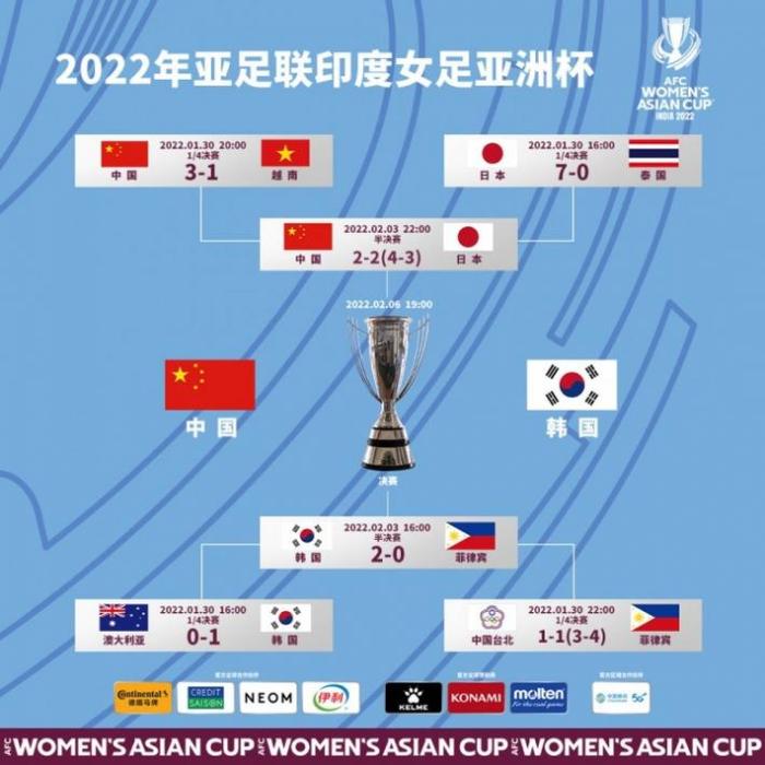 女足亚洲杯决赛将于北京时间2月6日晚7点进行。