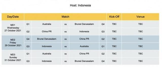 U23亚预赛赛程:中国五天三战,首战对阵印尼