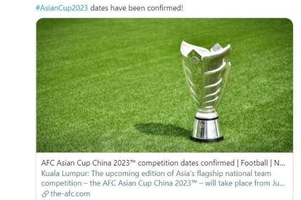 官方:2023年中国亚洲杯将于6月16日-7月16日举行