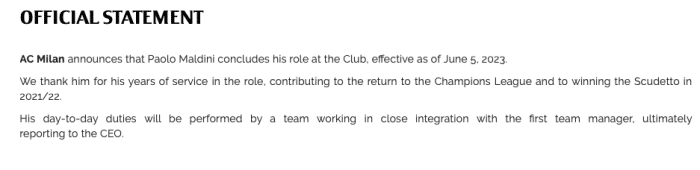 米兰官宣解雇技术总监马尔蒂尼,多位核心或负气离队