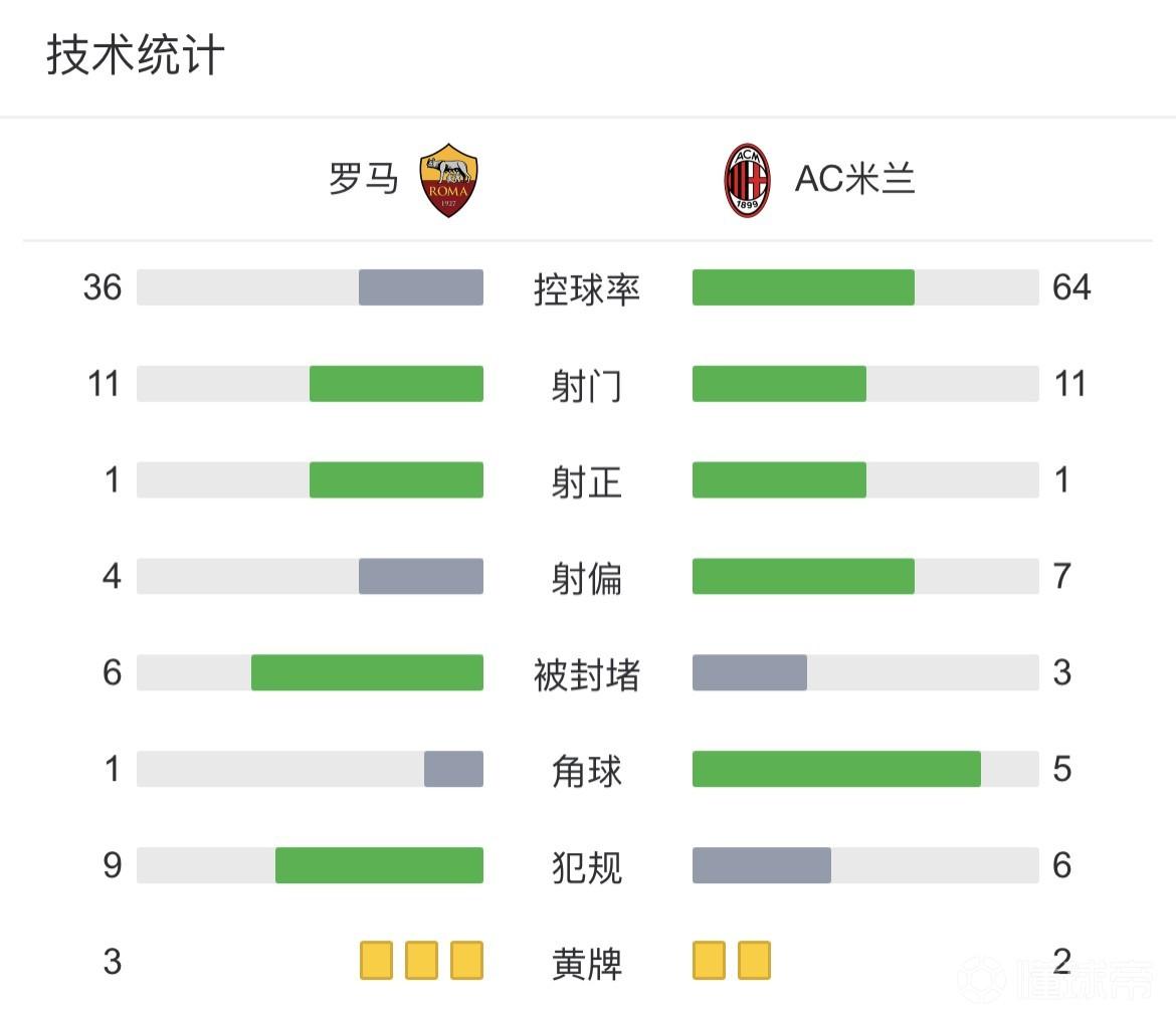 全场比赛结束,罗马1-1AC米兰。