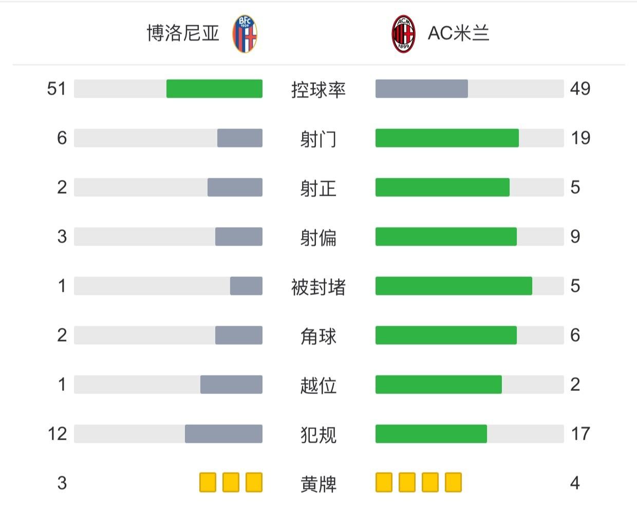 最终AC米兰客场1-1战平博洛尼亚,米兰联赛两连平。
